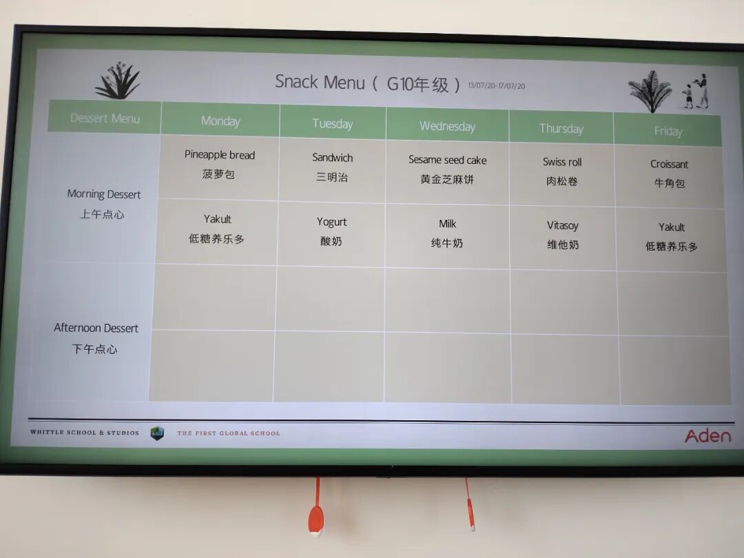 餐厅屏幕上会公布一周的菜单,菜品搭配都是营养均衡的。